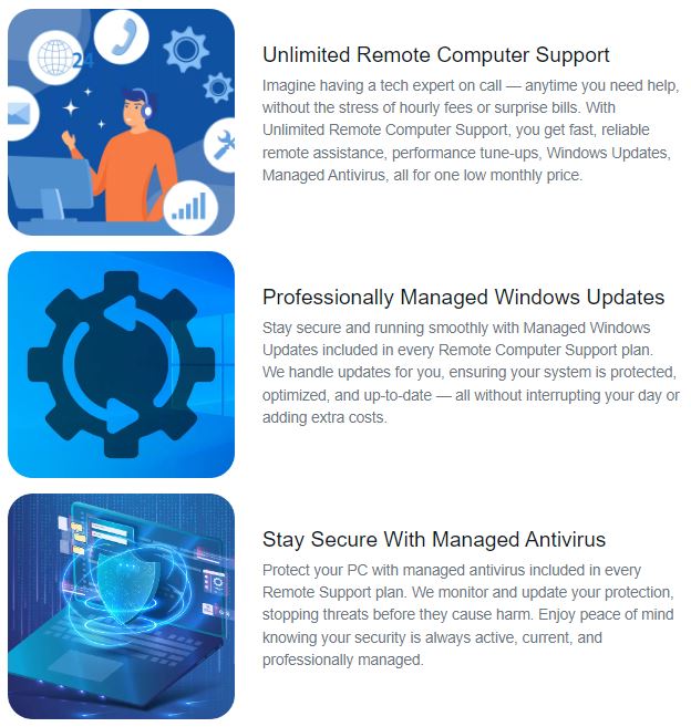 That means peace of mind, predictable costs, and expert support whenever you need it — all from the comfort of your home or office.